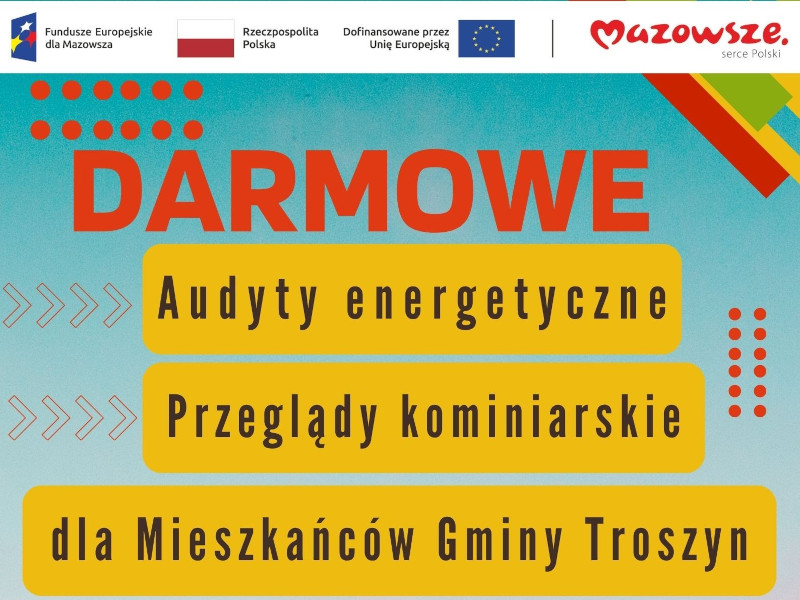 Nabór wniosków na bezpłatne audyty energetyczne i przeglądy kominiarskie dla właścicieli domów jednorodzinnych z terenu Gminy Troszyn.